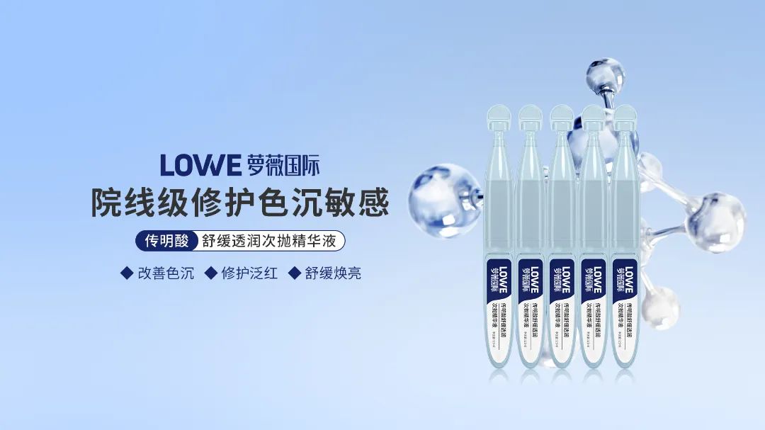 在传明酸热潮下,萝薇国际精准洞察市场需求,推出传明酸舒缓透润次抛精华液,以“高浓度、高稳定性、强协同、严工艺”塑造传明酸护肤新体验。