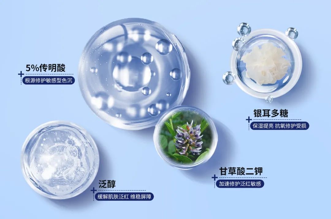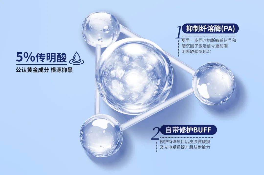 除了核心成分传明酸,配方还复配三大 “黄金辅助”: