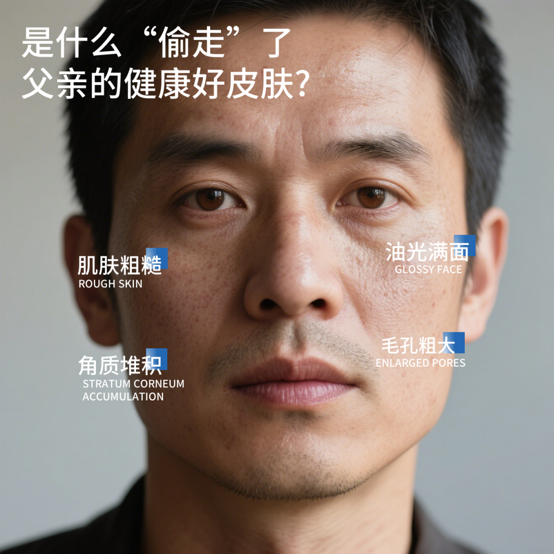 如何精准护肤,“照顾”好父亲的“脸面”?首先我们得先了解男性肌肤所面临的问题。受男性独特的生理结构、生活习惯和护肤意识等因素影响,其肌肤常常面临多种挑战!