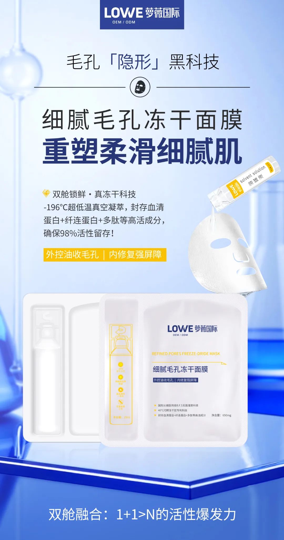 萝薇国际以“爸”气的代加工实力为品牌赋能,作为一家拥有5万㎡的无菌智能全自动化车间、冻干面膜年产能2亿片的行业领军者,萝薇国际可提供从配方研发到设计生产的一站式定制OEM/ODM服务,让每一份对“脸面”的关爱,都能通过专业代加工转化为触达人心的产品,以科技匠心共筑护肤新可能。
