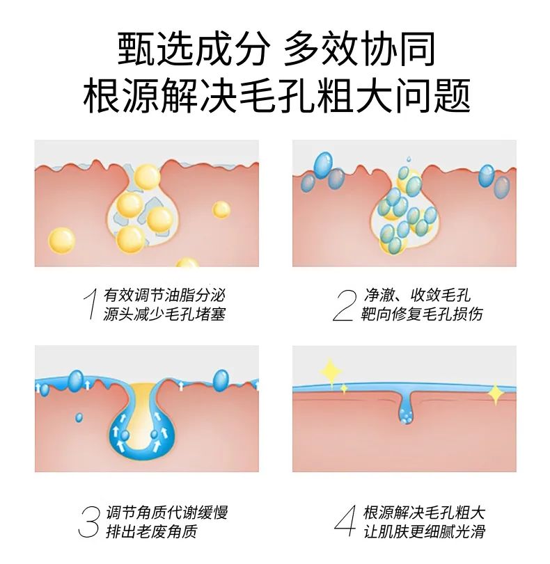 面膜的核心成分堪称“毛孔克星”组合,多效协同,从根源解决毛孔粗大问题: