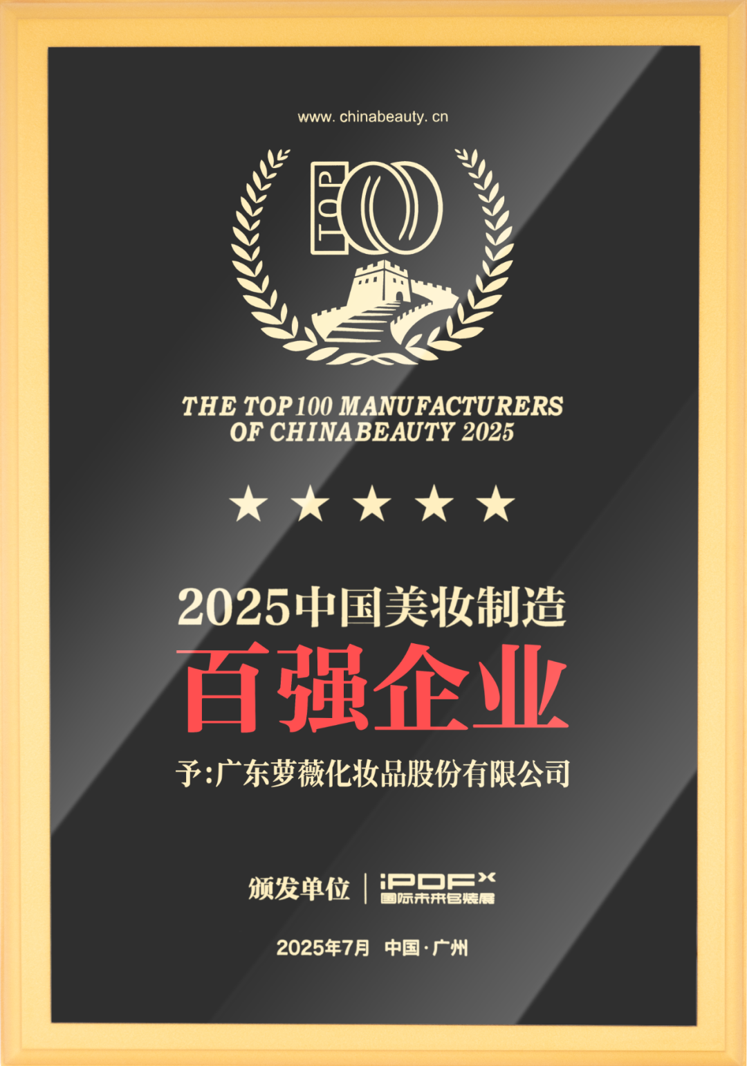 萝薇国际荣获“2025中国美妆制造百强企业”殊荣