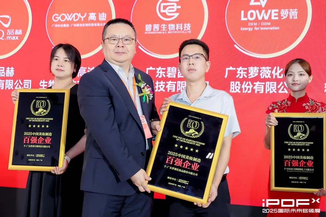 7月4日,由美妆网主办的2025iPDM国际未来包装展颁奖盛典在广州空港博览中心盛大启幕。萝薇国际凭借在美妆制造领域的卓越表现,从参选自全国的1000+企业中脱颖而出,荣获“2025中国美妆制造百强企业”称号。