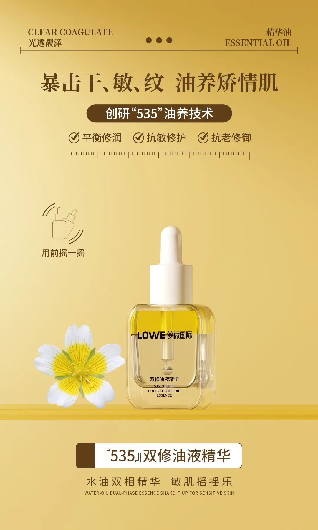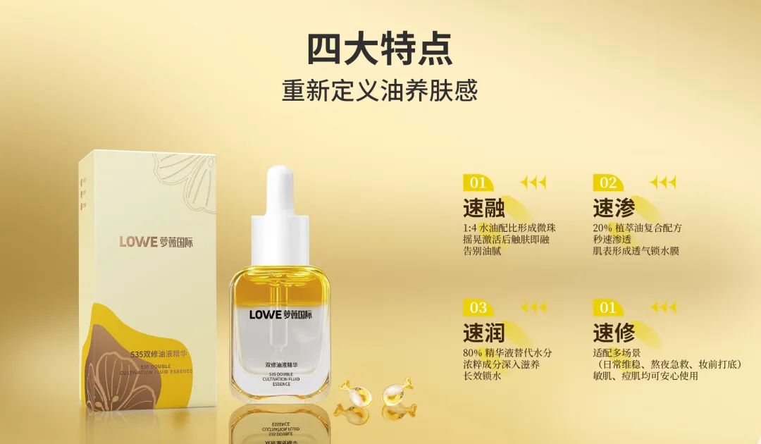 洞察这一市场脉动,萝薇国际适时推出了萝薇『535』双修油液精华,提供了更全面的“以油养肤”解决方案。