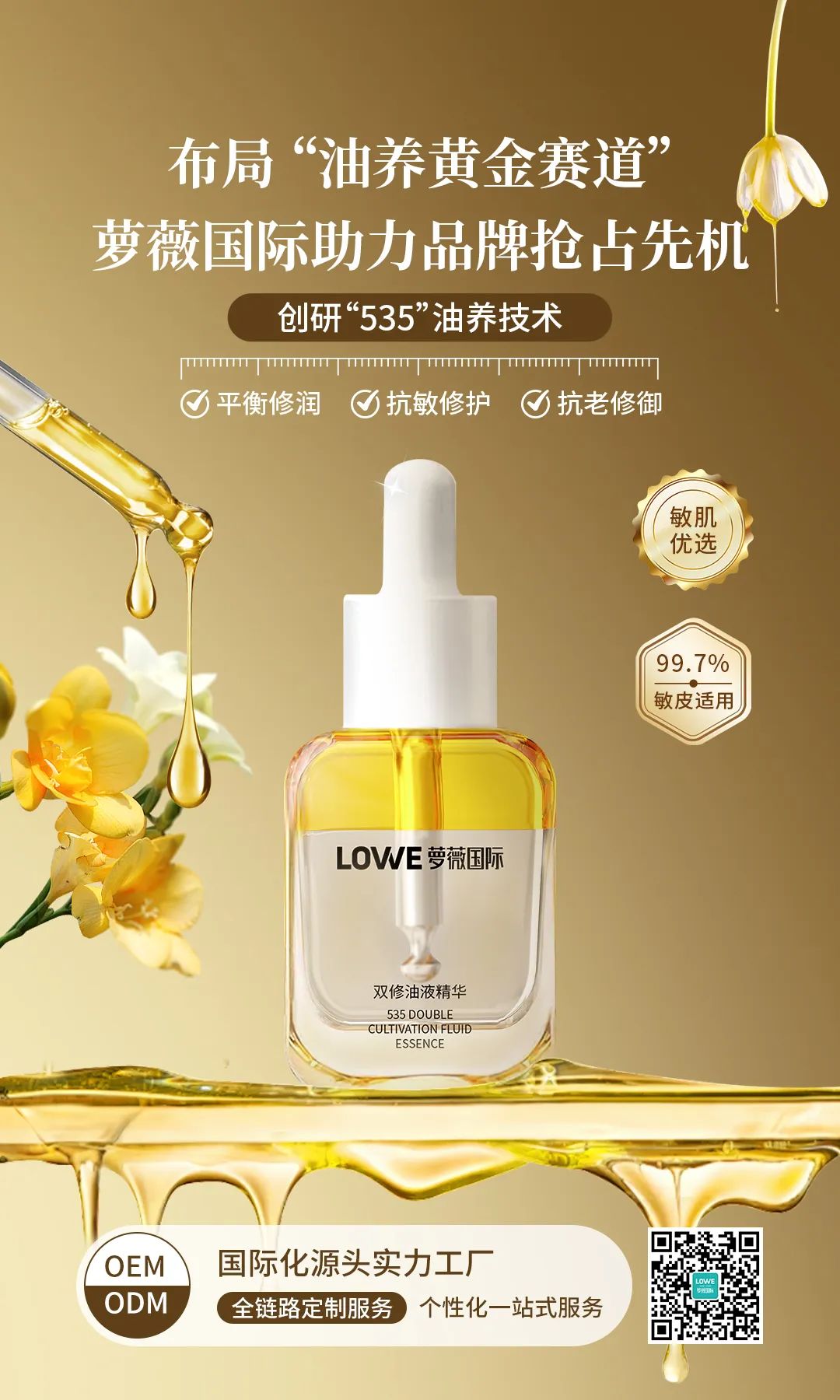 在“以油养肤”风口下,萝薇『535』双修油液精华既是消费者的油养新选择,更是品牌破局的“加速器”。萝薇国际以智造实力,助力品牌高效启航,快速抢占市场先机,与品牌共赴增长蓝海。