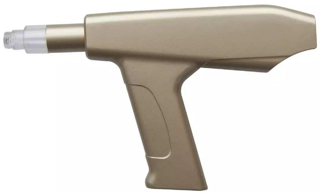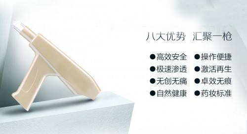 水光针使用负压multi针在皮肤真皮层注入人体因变老而流失的玻尿酸、胶原蛋白、肉毒素、PRP自体细胞等高端打针产品,使皮肤内吸收并贮藏自身分量的1000倍的水分,唤醒细胞再生机能,重现修正皮肤干枯开裂的细胞。在短时间内重塑紧致滑润富有弹性的肌肤。一支水光针相当于敷100片面膜,拍30支爽肤水!