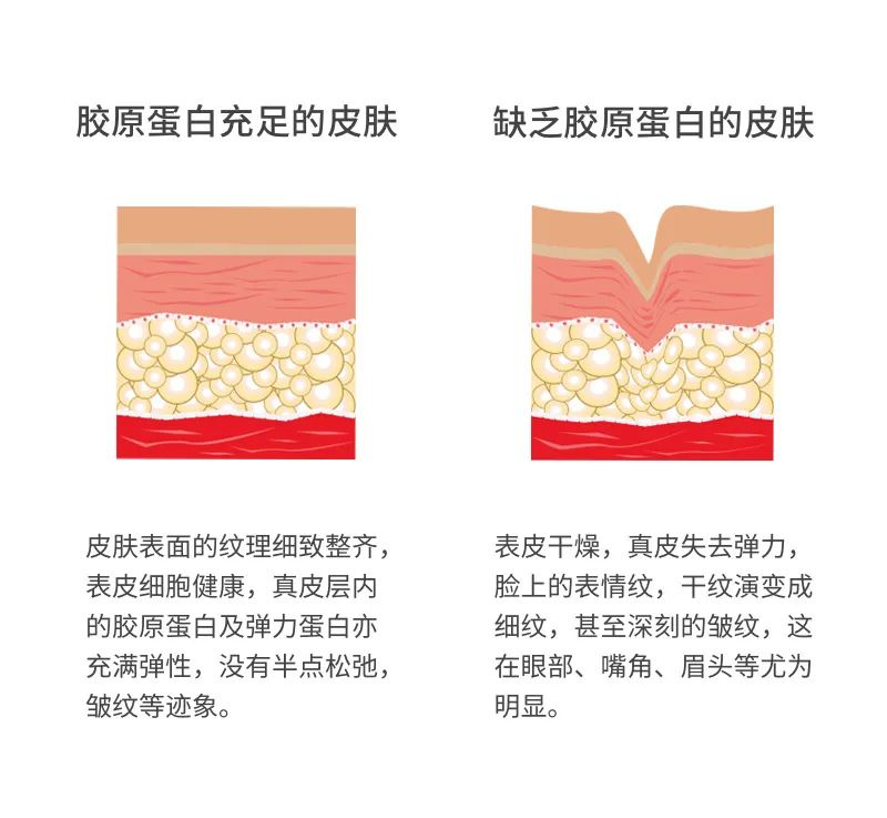 而面部中最多的就是I型和III型胶原蛋白,I型胶原蛋白组织纤维更粗,结构更坚韧;相当于它给皮肤提供了网架的支撑作用,把皮肤撑起来;III型胶原蛋白的结构更为柔软,有弹性,能够促进皮肤伤口的愈合。