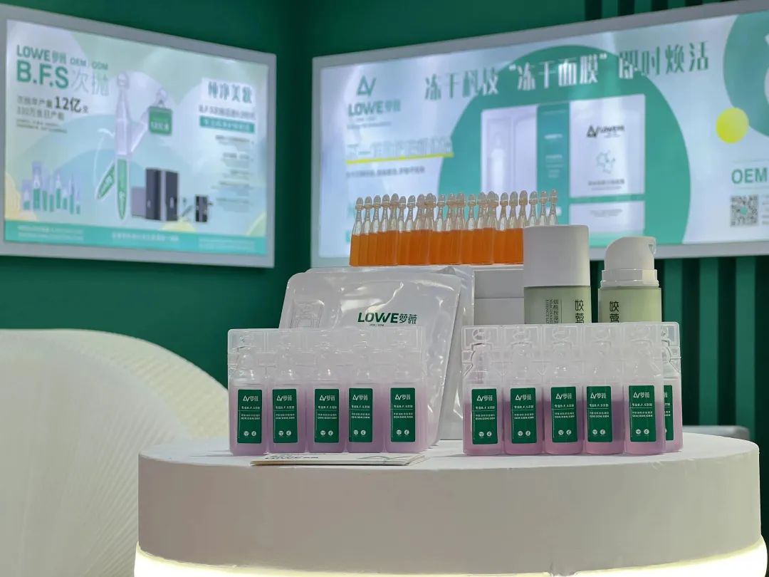 在“百花齐放”的展馆中,位于A区1.1馆E04展位的萝薇展厅成为流量聚集点,萝薇携次抛、泡罩、胶囊、冻干面膜、冻干粉等时尚新品亮相美博会。前来寻求合作的客户络绎不绝。
