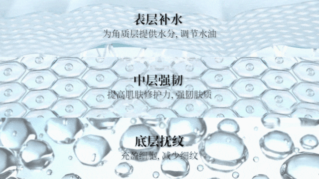 I型重组胶原、III型重组胶原、XVII型重组胶原、弹性蛋白及纤连蛋白,5D胶原,科学、严谨地针对每个层面进行分层系统抗老,多维提升肌肤“年轻力”!