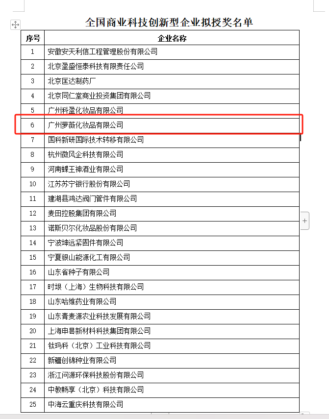 近期,中国商业联合会发布了“中国商业联合会科学技术奖”评选结果,广州萝薇化妆品有限公司获评“全国商业科技创新型企业”奖项。