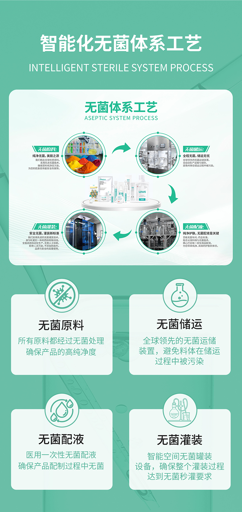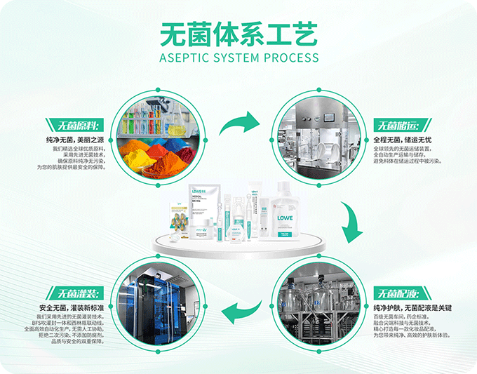 打造了独特的闭环式无菌次抛工艺系统,包括无菌原料、无菌配液、无菌储运、无菌罐装一体化,保护产品从原料到储运实现真无菌,为品牌商提供更纯净、鲜活、安全、有效的护肤品生产制造服务。